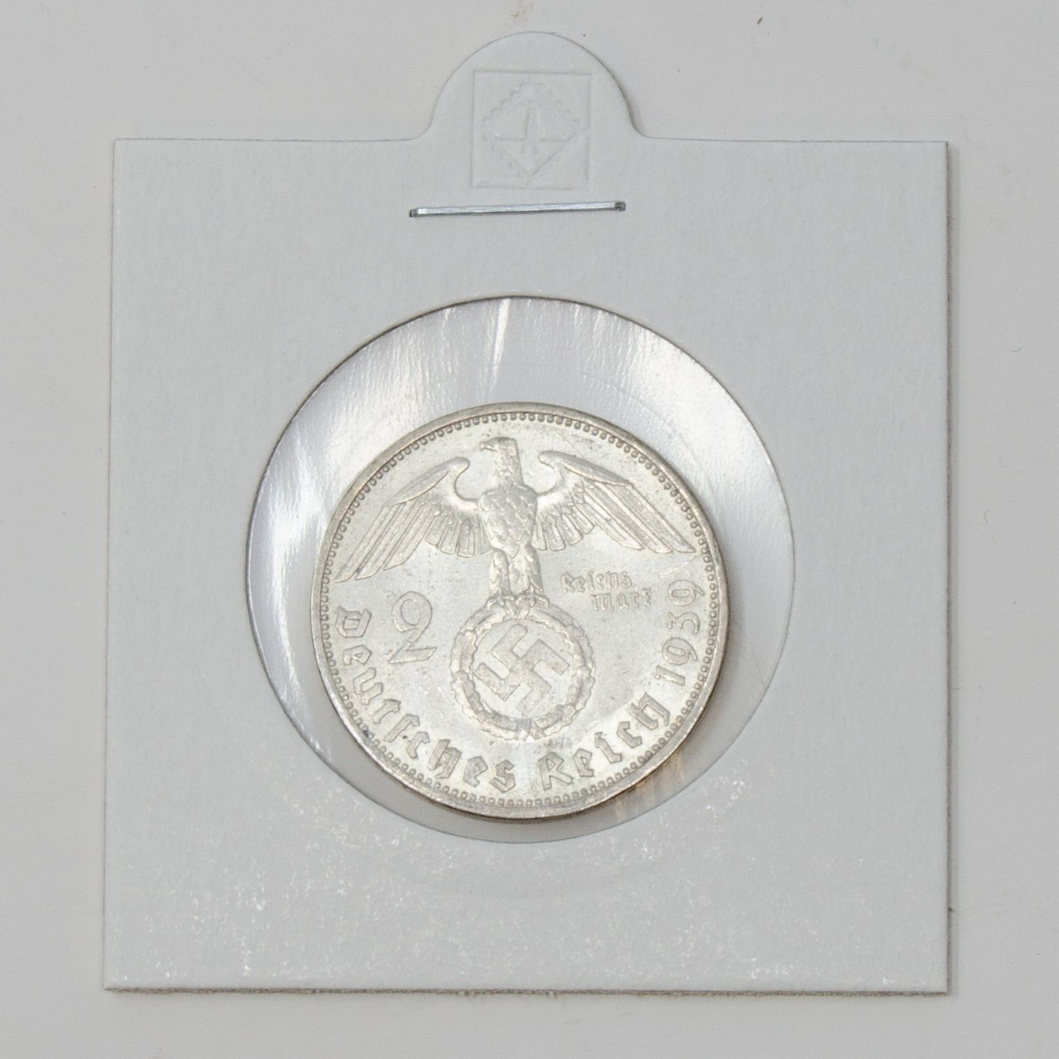 1939 WWII SILVER NAZI GERMANY 2 REICHSMARK COIN