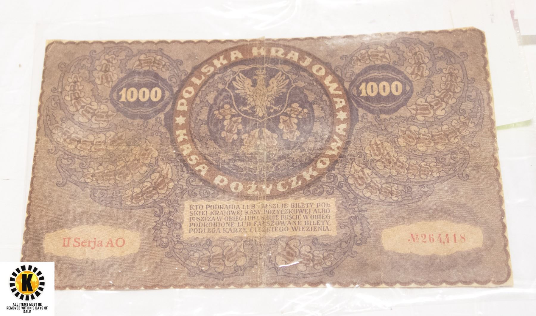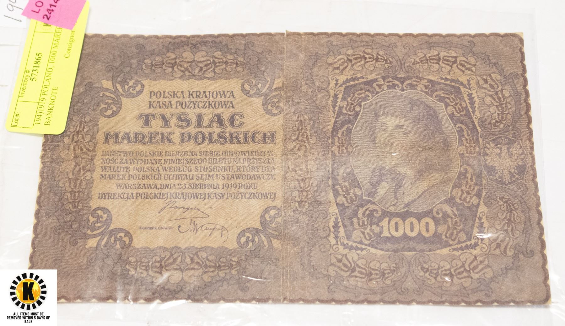 194)1919 POLAND, 1000 MAREK BANKNOTE