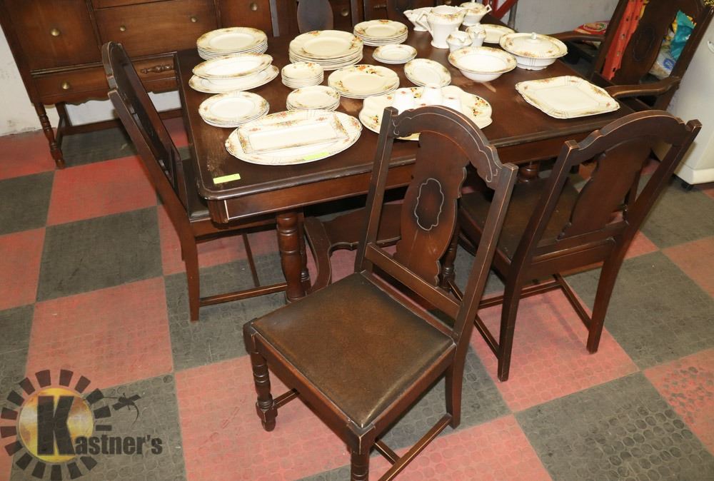 1940'S SET DINING ROOM TABLE 6 CHAIRS, CHINA