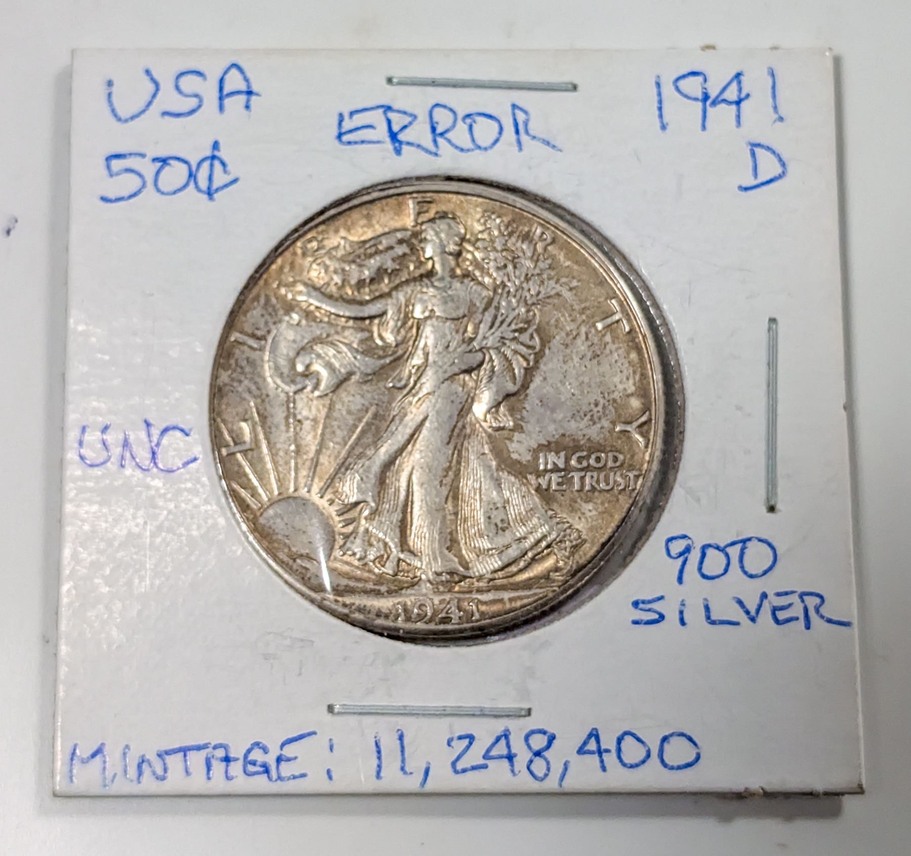 1941 D USA 50 CENT SILVER COIN DOUBLING ERROR
