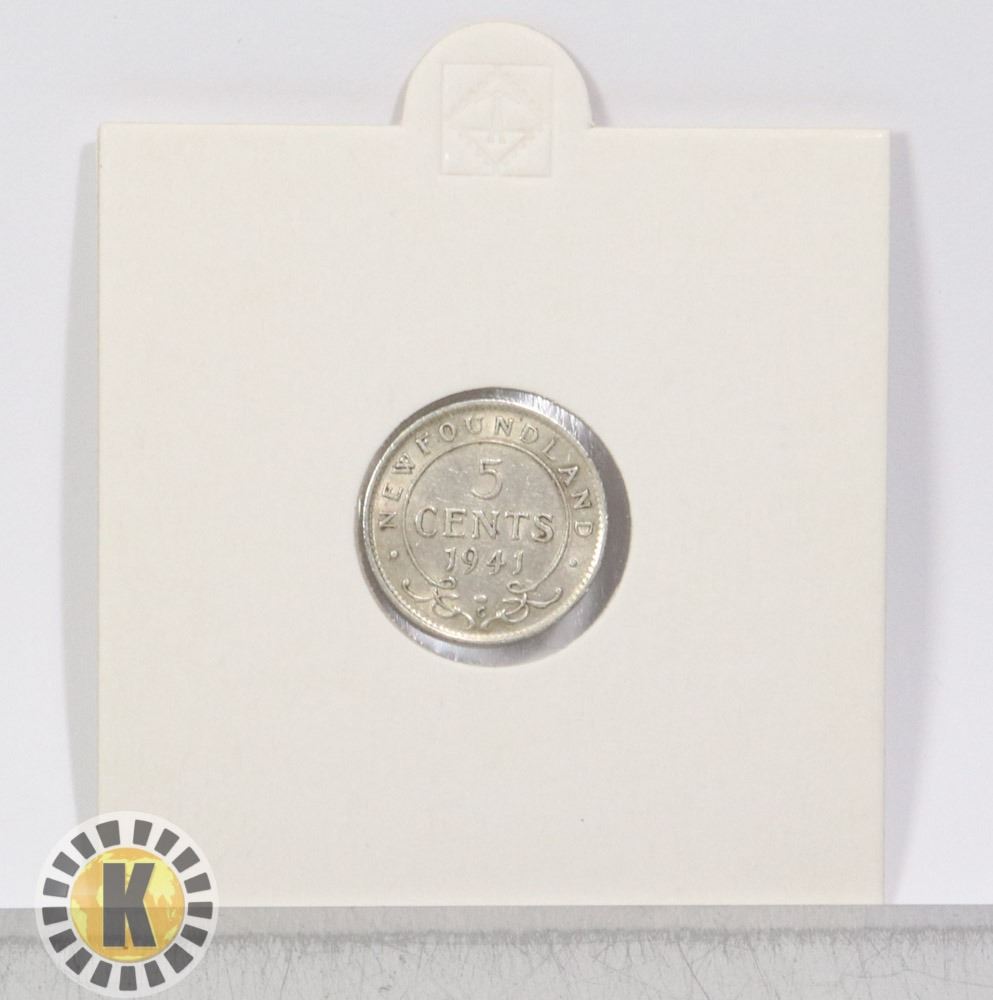 HIGH GRADE EXAMPLE OF A 1941 NEWFOUNDLAND SILVER 5 CENT EXCELLENT DETAIL WITH HINT OF MINT LUSTER ***ITEM LOCATED IN LETHBRIDGE AB