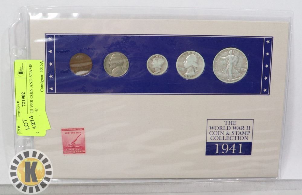 COMPLETE SET OF WW2 ISSUED USA COINS FROM 1941. INCLUDING SILVER MERCURY DIME, QUARTER AND HALF DOLLAR. IN CASE.***ITEM LOCATED IN LETHBRIDGE AB