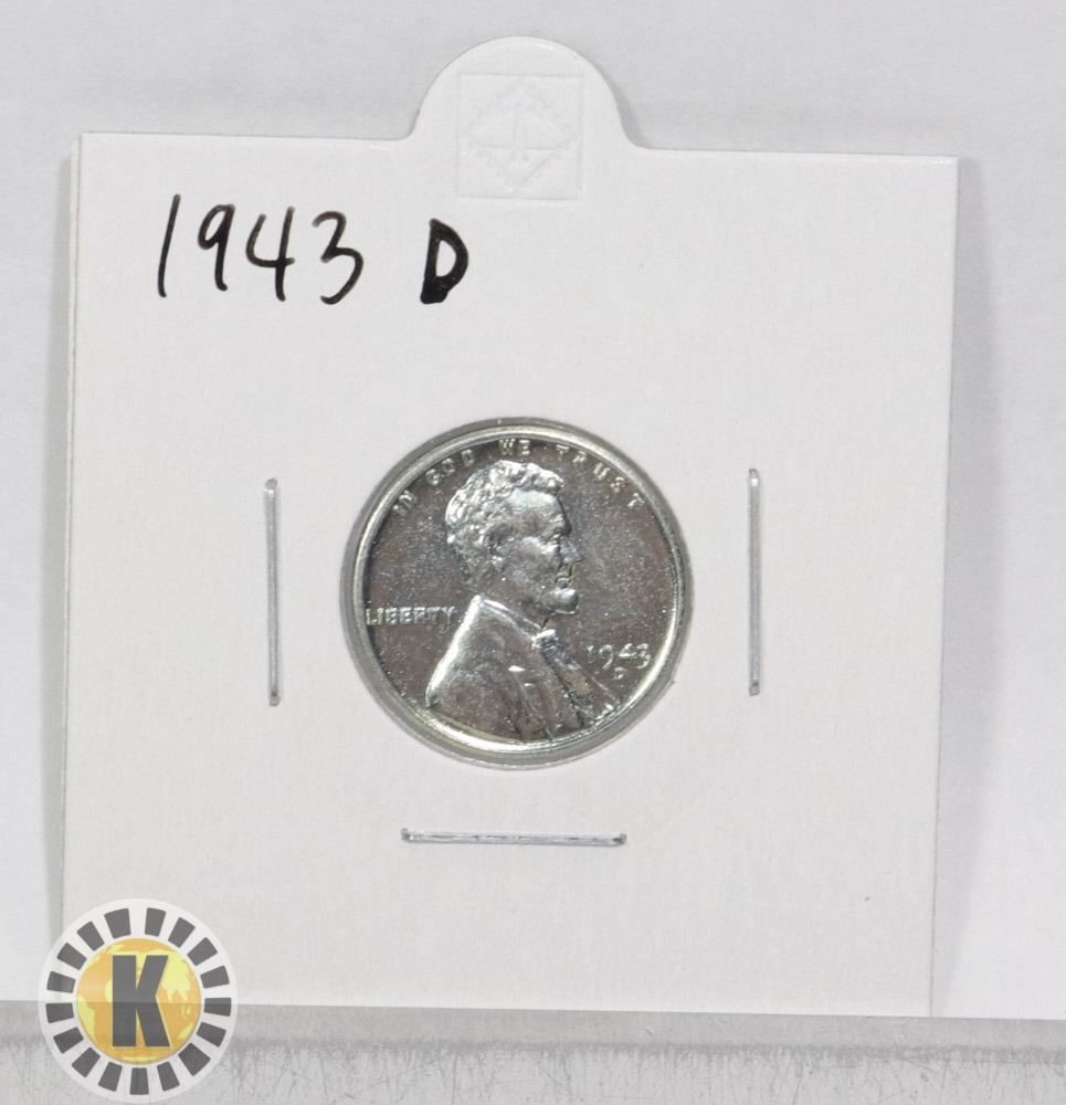 1943 D STEEL USA WWII ISSUE 1 CENT COIN, BU