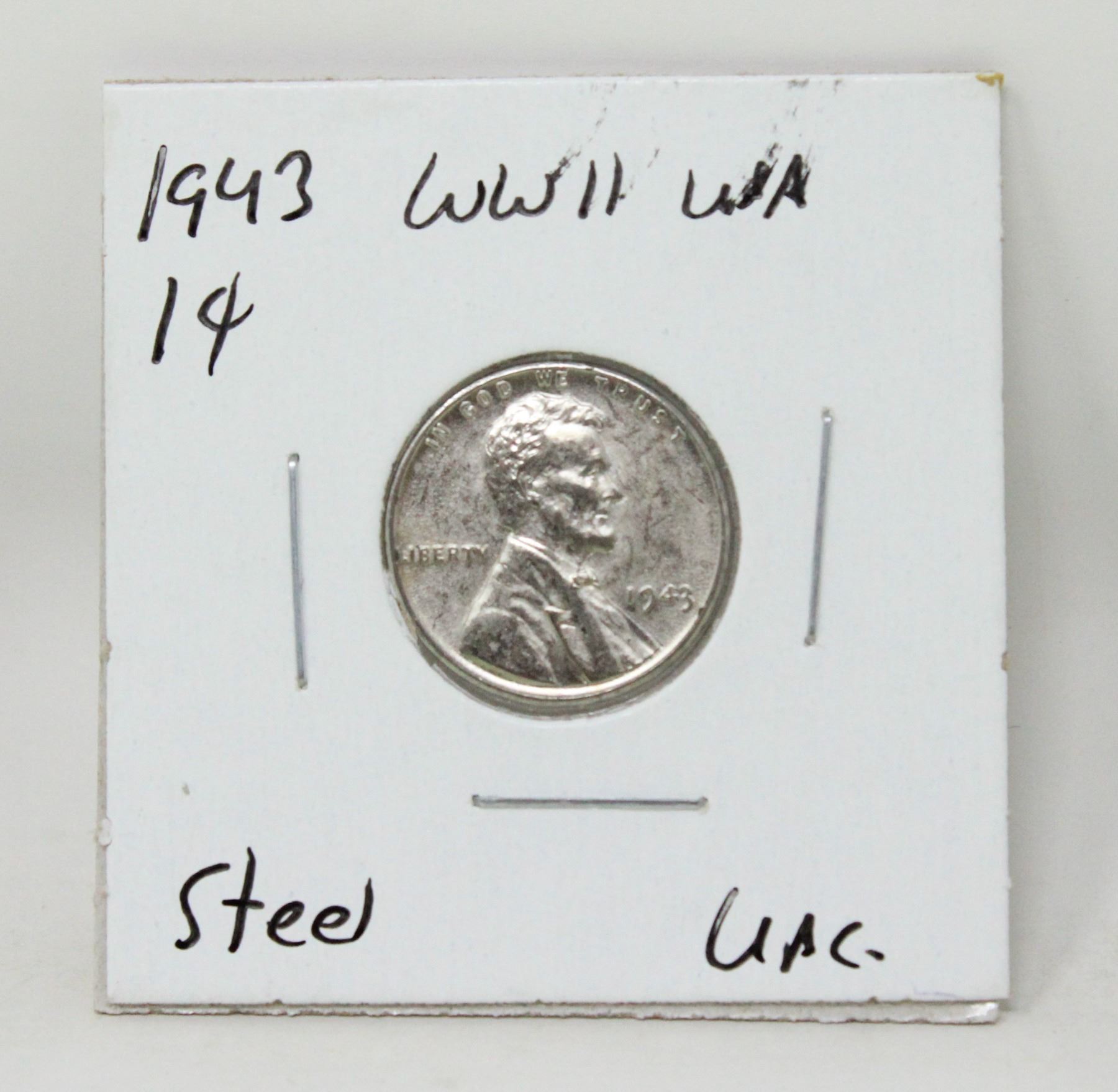 1943 WWII USA STEEL ONE CENT COIN, UNCIRCULATED