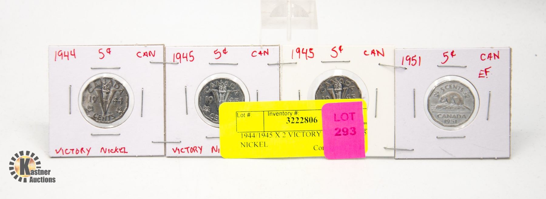 1944/1945 X 2 VICTORY NICKEL, 1951 NICKEL