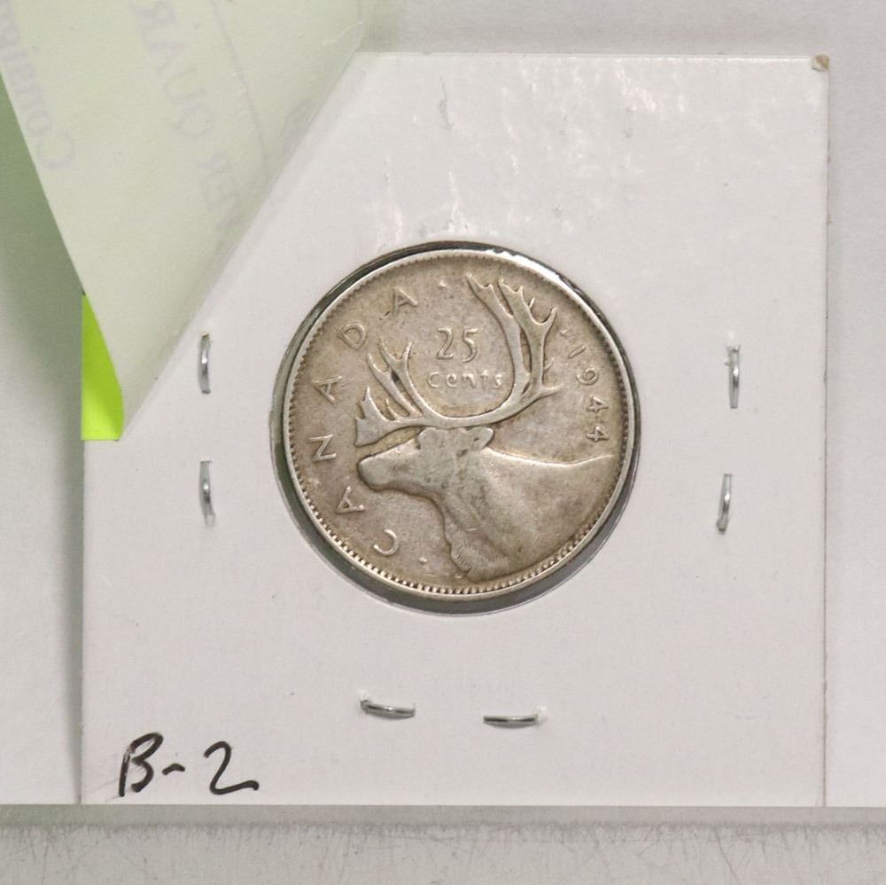 1944 CANADIAN SILVER QUARTER-COINS & CURRENCY