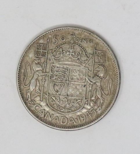 1945 CANADIAN SILVER 50 CENT PIECE COIN