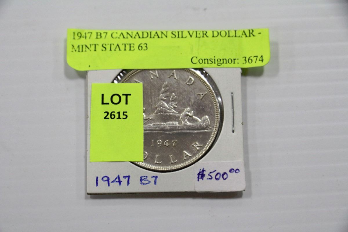 1947 B7 CANADIAN SILVER DOLLAR - MINT STATE 63