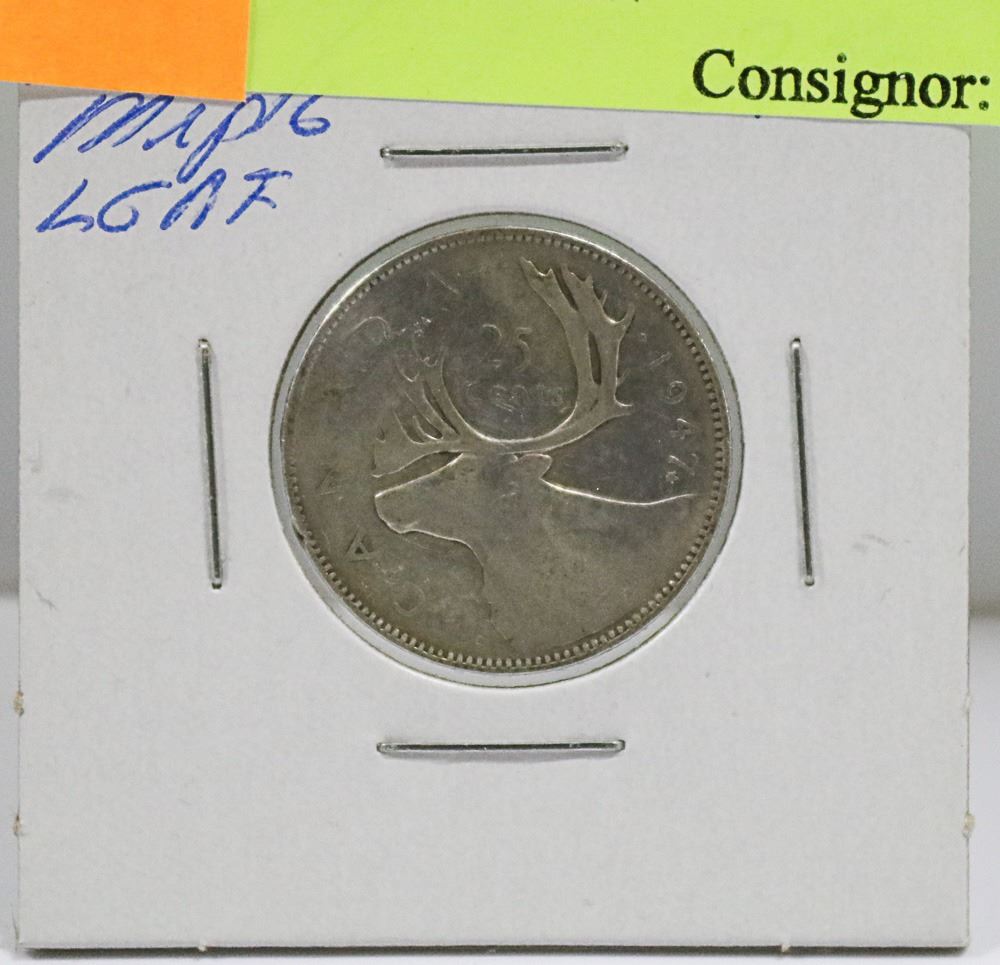 1947 MAPLE LEAF CANADIAN GVI SILVER 25 CENT COIN