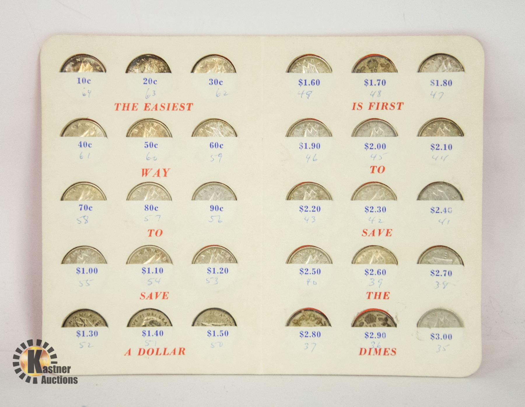 1950'S "DAILY DIME SAVER" COIN HOLDER W/30 DIME
