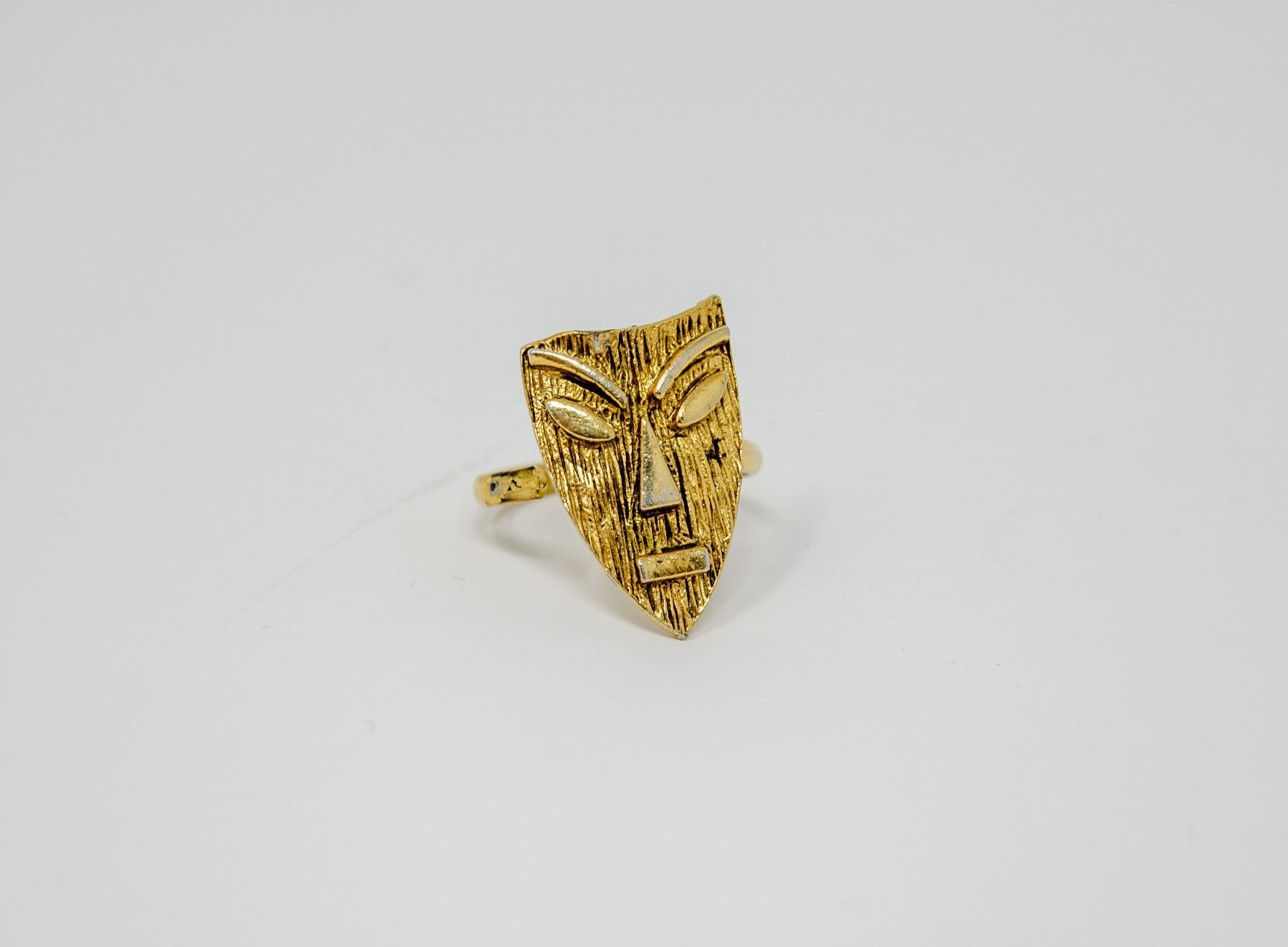 1950S GOLD TONED TIKI RING ADJUSTABLE