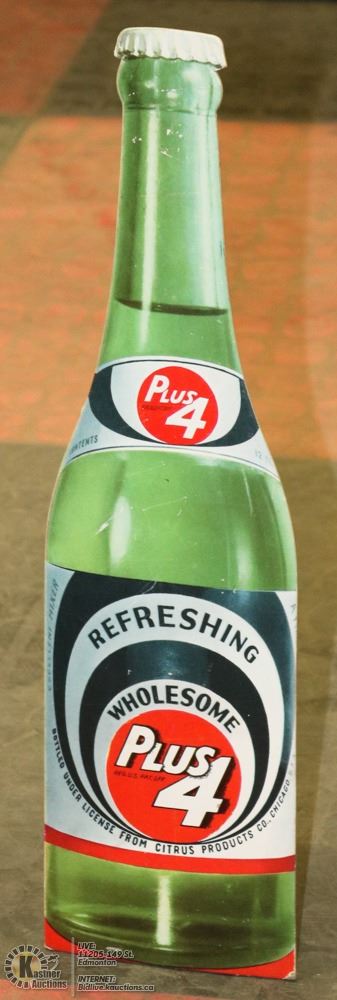1950S VINTAGE PLUS 4 SODA ADVERTISING SIGN.