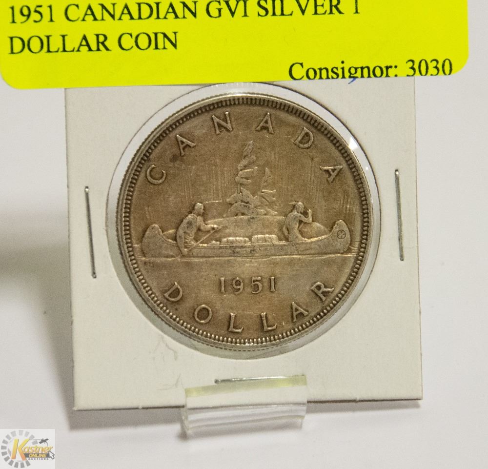 1951 CANADIAN GVI SILVER 1 DOLLAR COIN