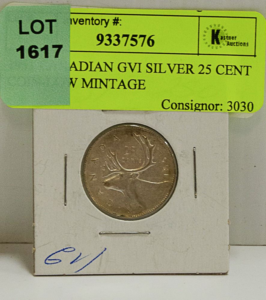 1951 CANADIAN GVI SILVER 25 CENT COIN