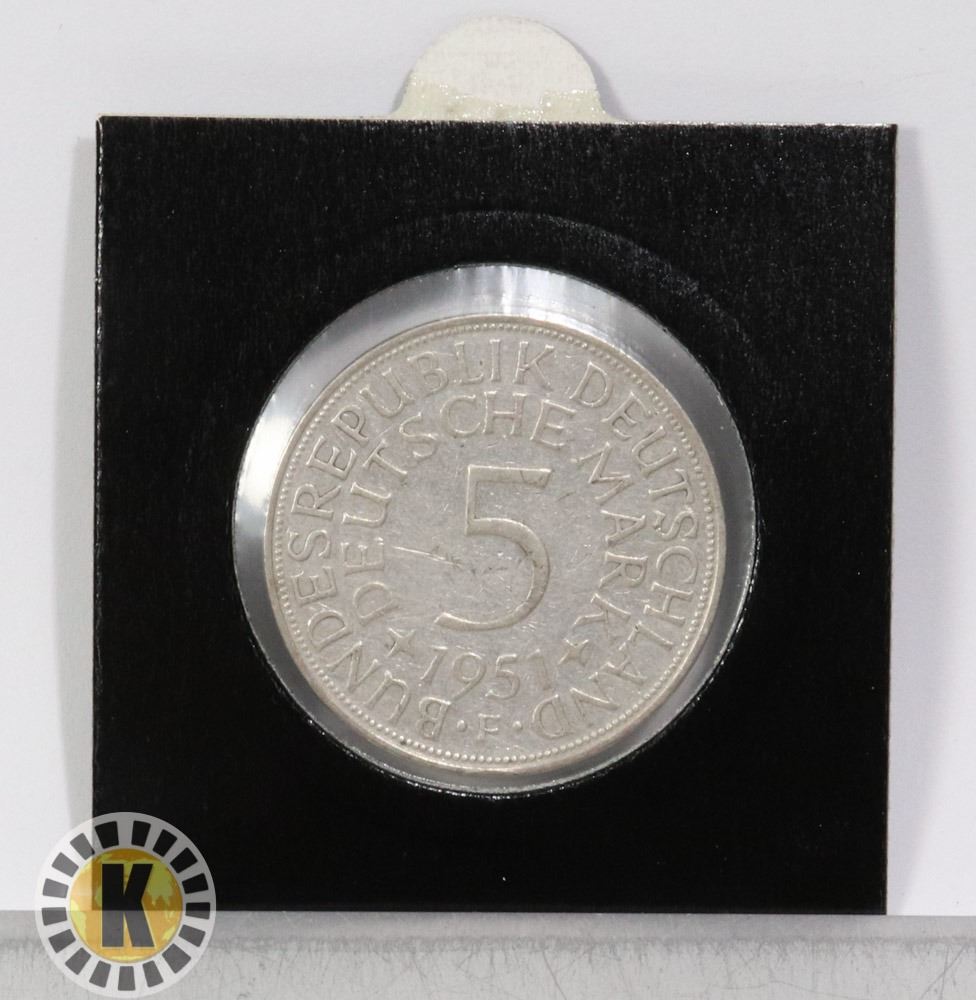 1951F GERMAN SILVER 5 MARK COIN, 1ST YEAR OF ISSUE