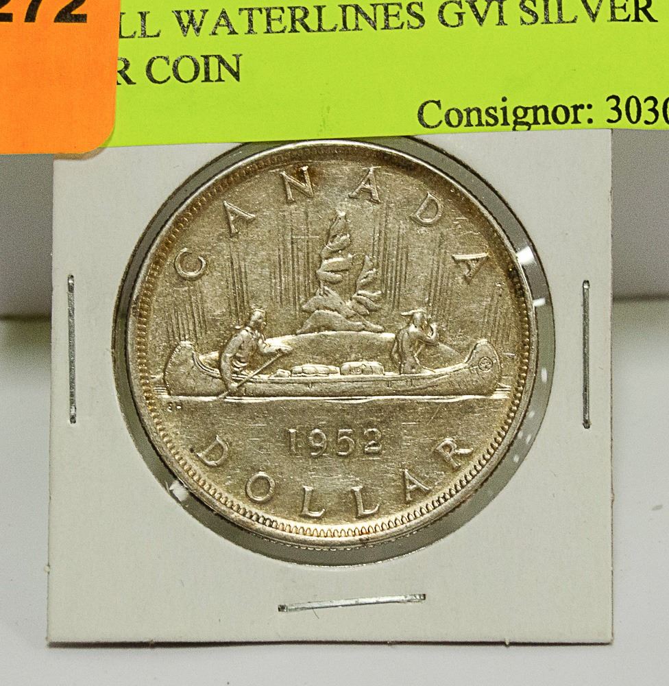 1952 FULL WATERLINES GVI SILVER DOLLAR COIN