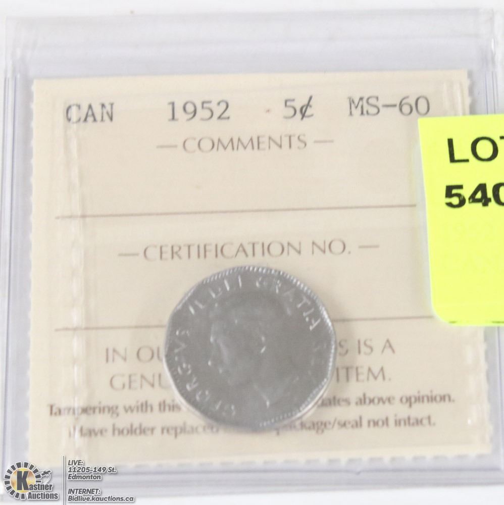 1952 ICCS GRADED FIVE CENT CANADIAN COIN