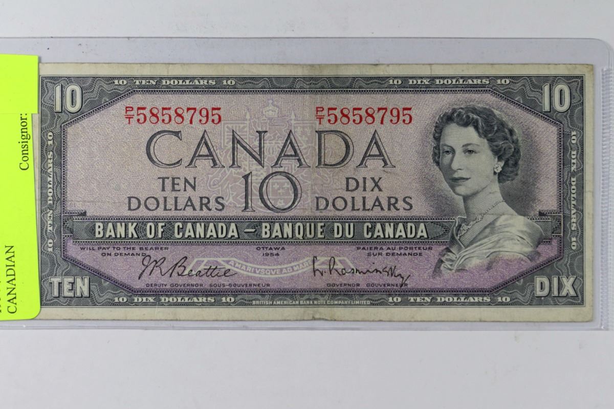 1954 $10 NOTES CANADIAN BEATTIE/RASMINSKY