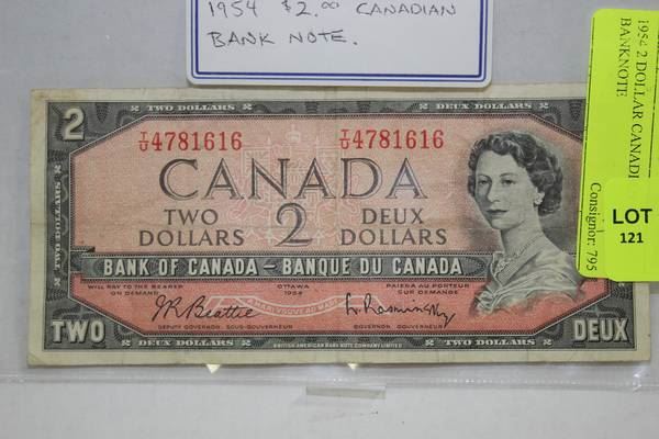 1954 2 DOLLAR CANADIAN BANKNOTE