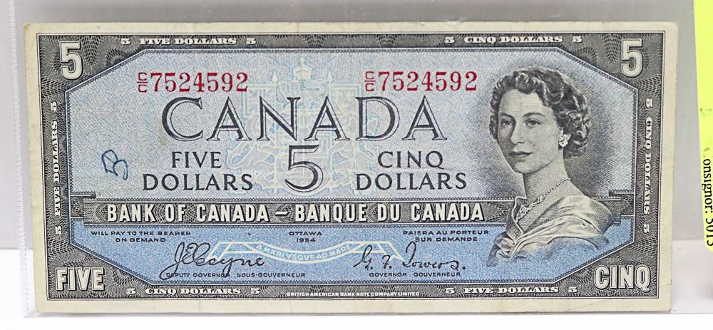 1954 BANK OF CANADA "DEVILS FACE" $5 NOT