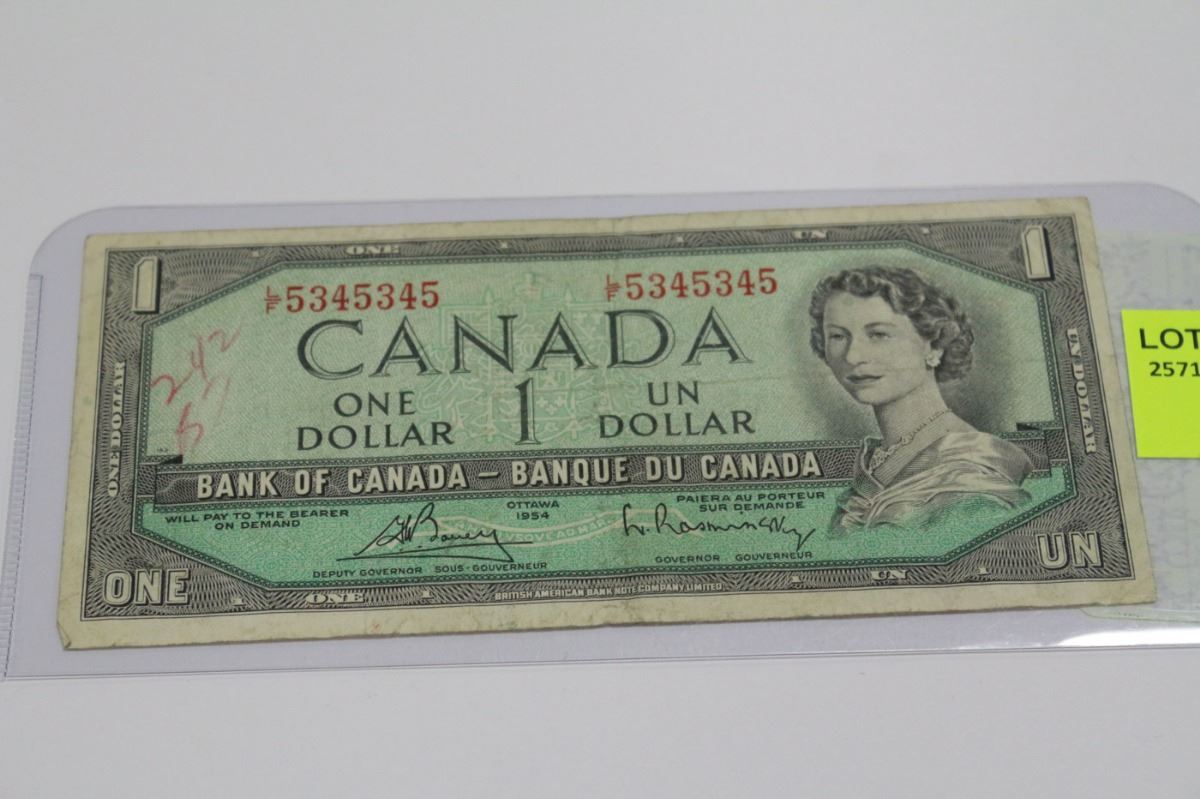 1954 CANADA 1 DOLLAR BANKNOTE