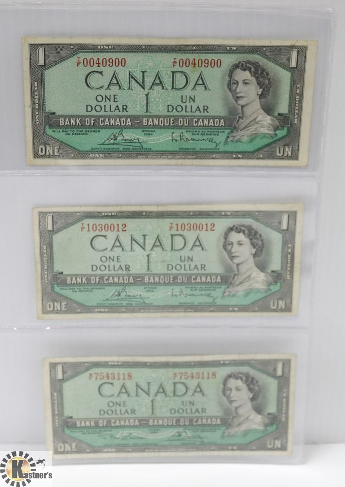 1954 CANADIAN $1 DOLLAR BILLS- SET OF 3