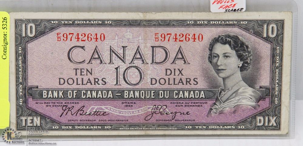 1954 CANADIAN $10.00 DEVILS FACE DOLLAR BILL