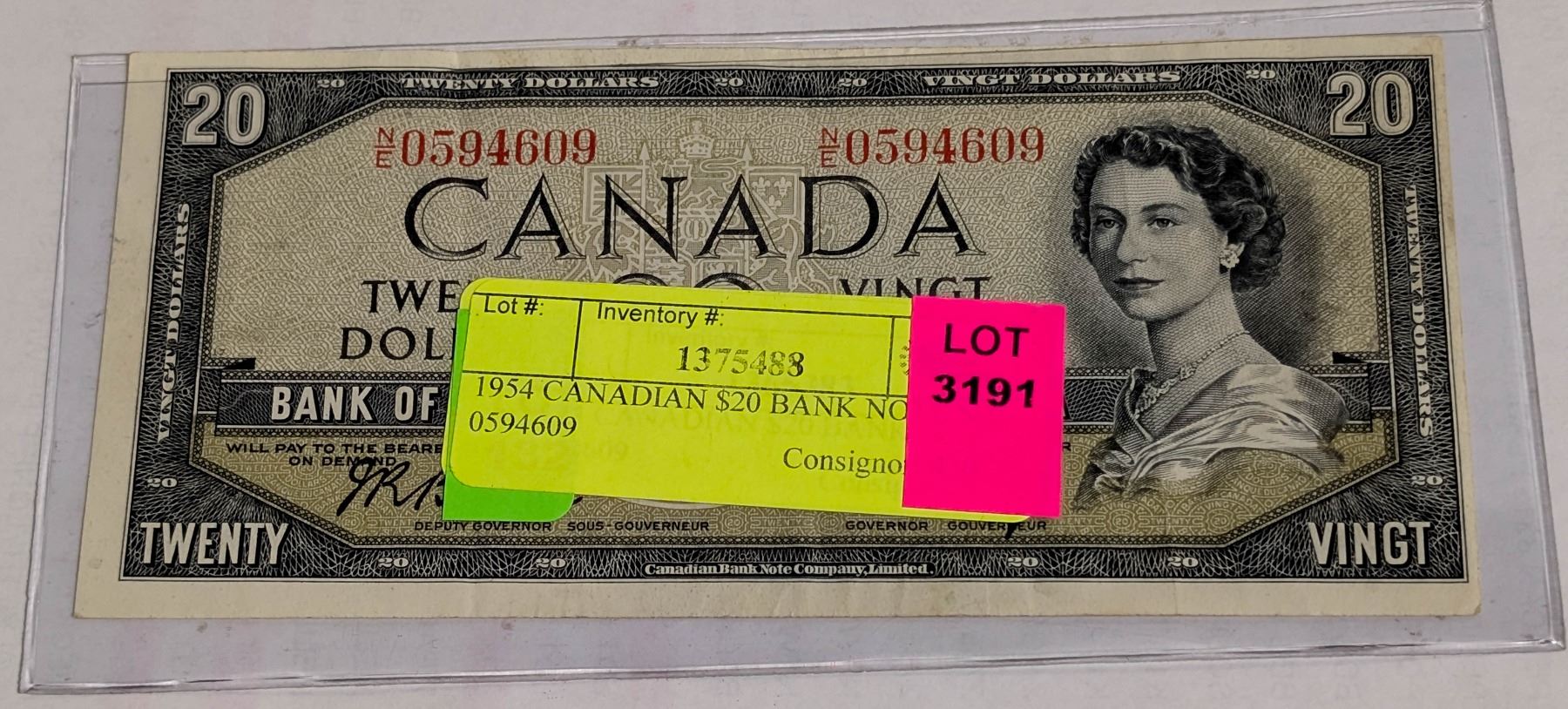 1954 CANADIAN $20 BANK NOTE N/E 0594609