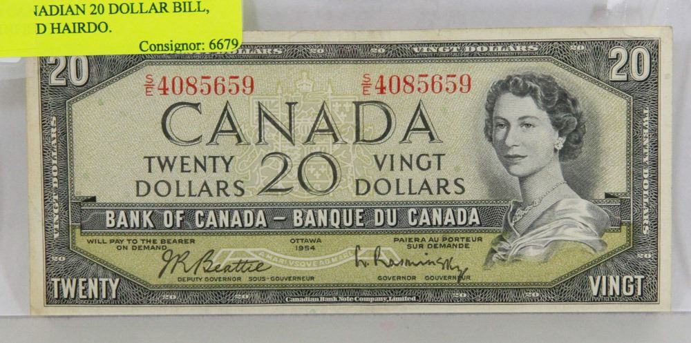 1954 CANADIAN 20 DOLLAR BILL, MODIFIED PORTRAIT