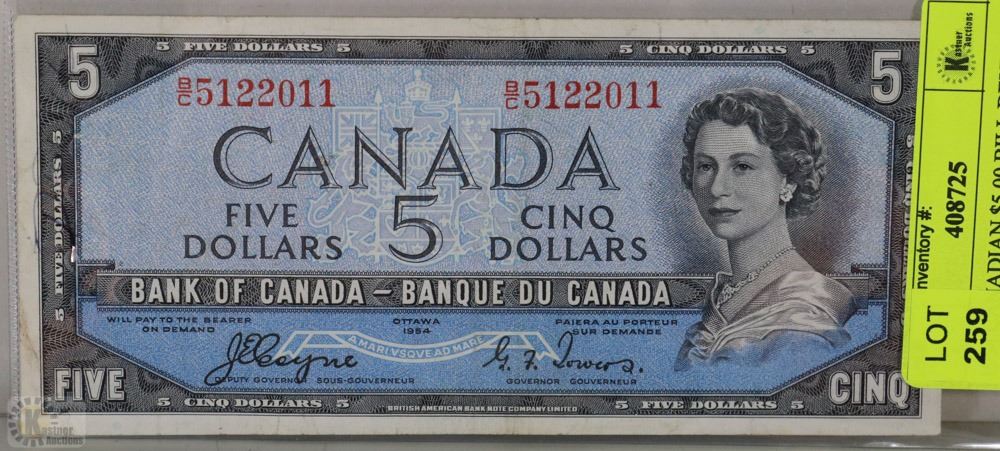 1954 CANADIAN $5.00 BILL DEVILS FACE