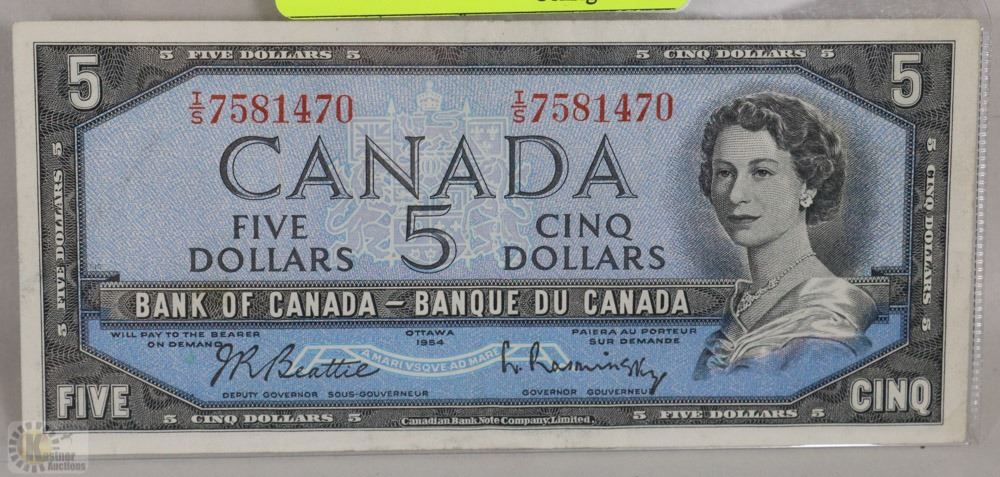 1954 CANADIAN $5.00 DOLLAR BANK NOTE