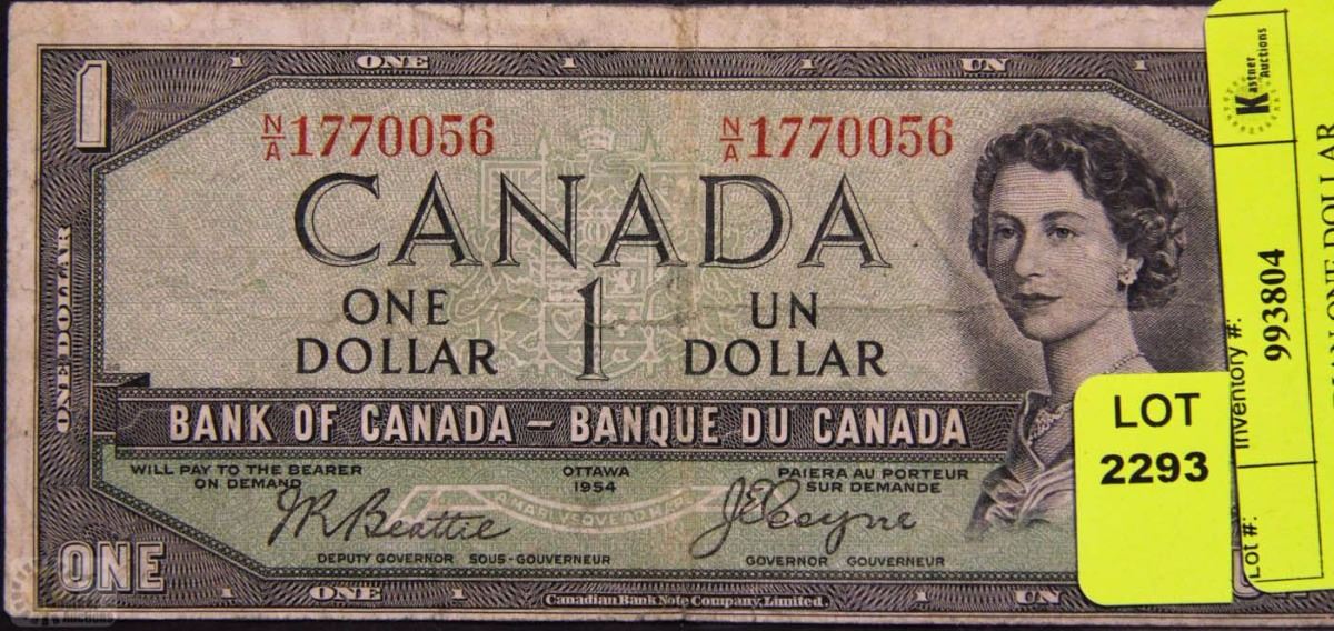 1954 CANADIAN ONE DOLLAR BANKNOTE
