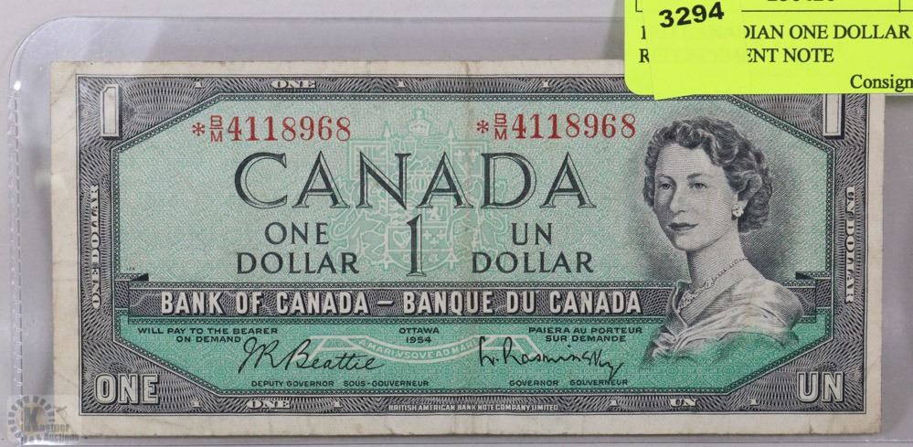 1954 CANADIAN ONE DOLLAR REPLACEMENT NOTE