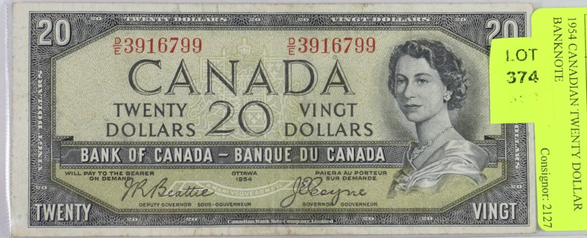 1954 CANADIAN TWENTY DOLLAR BANKNOTE