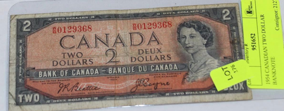 1954 CANADIAN TWO DOLLAR BANKNOTE
