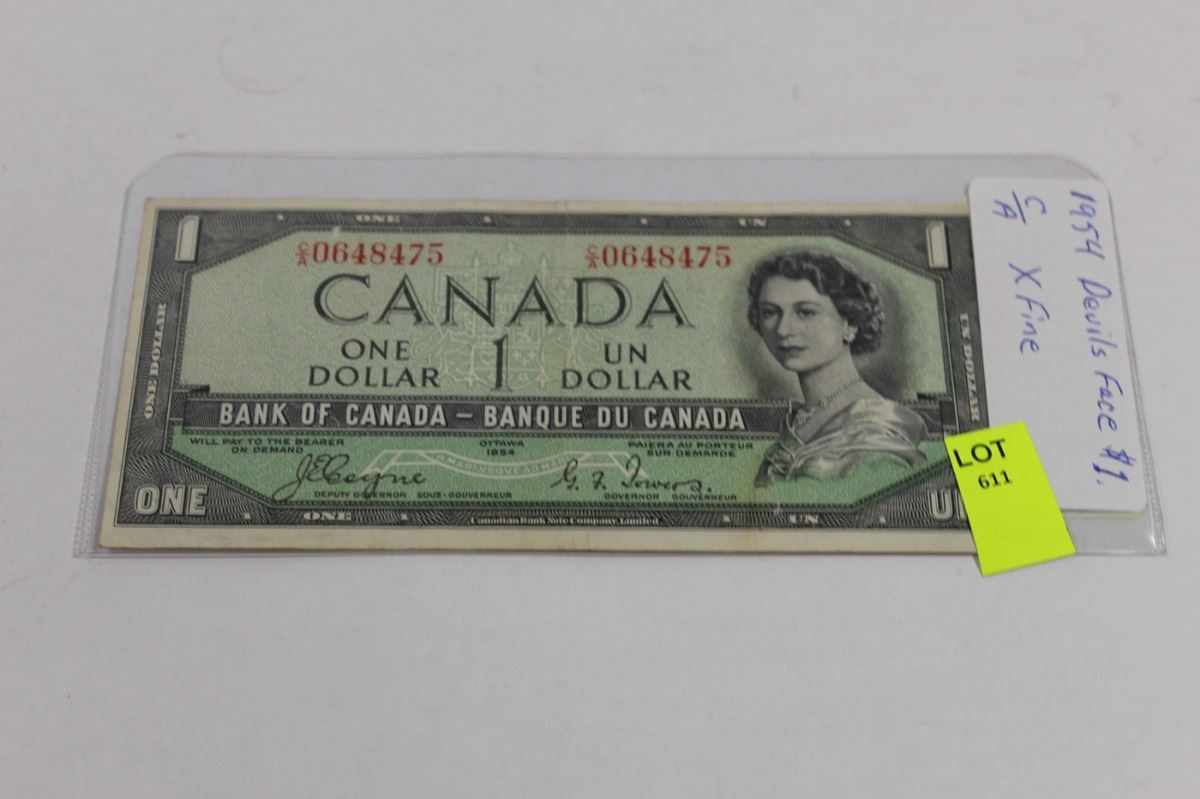 1954 DEVILS FACE IN HAIR ONE DOLLAR BANKNOTE