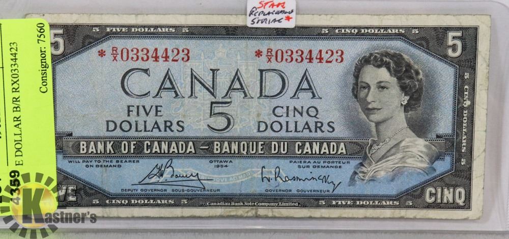 1954  FIVE DOLLAR B/R RX0334423