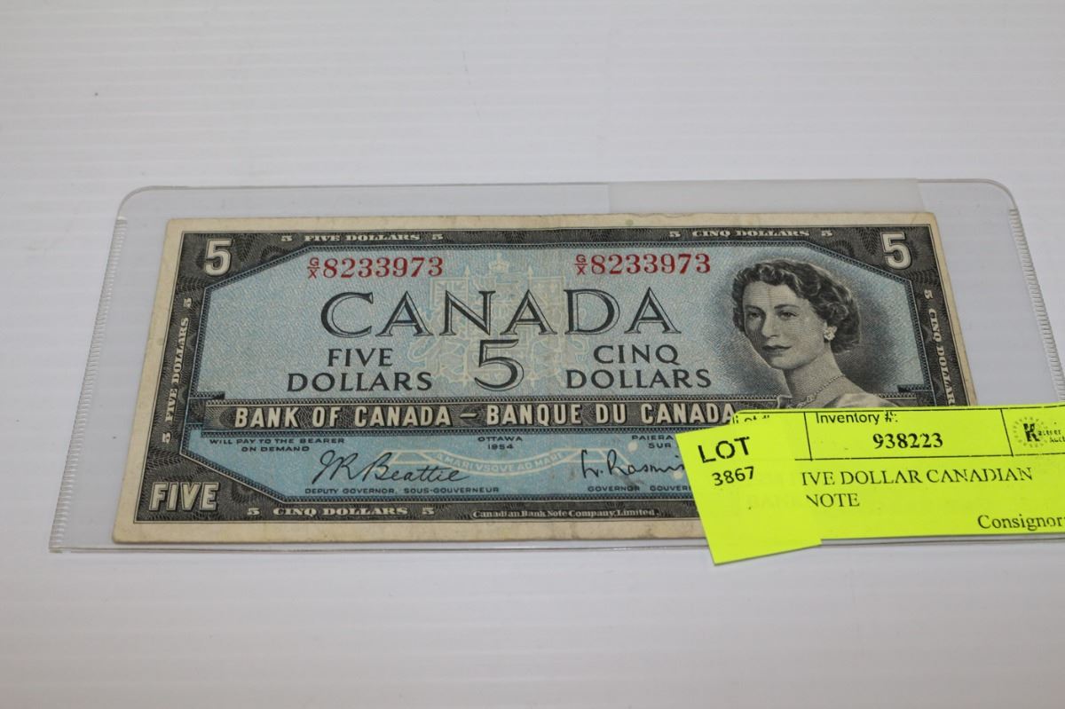 1954 FIVE DOLLAR CANADIAN BANKNOTE