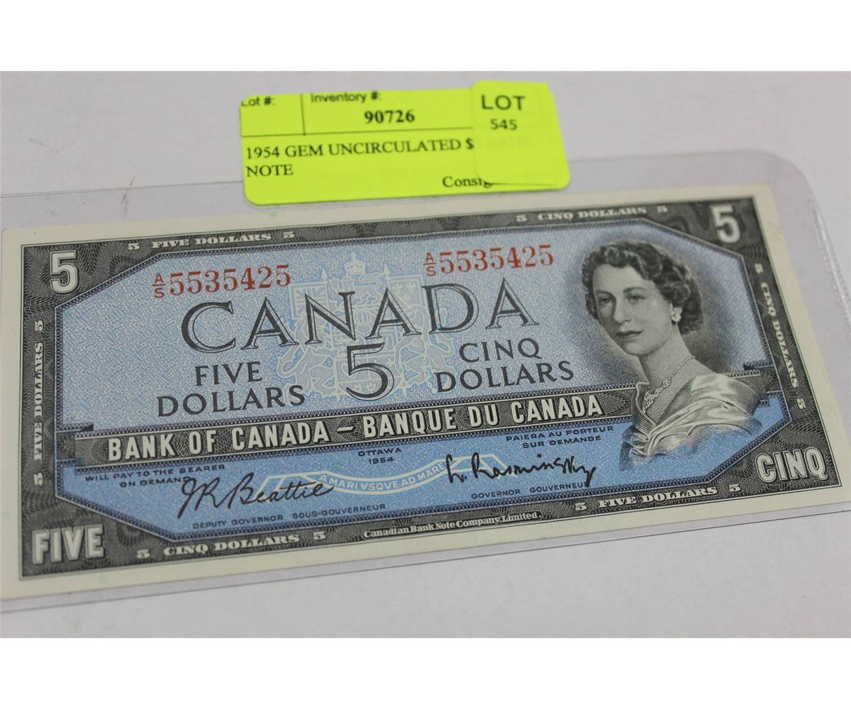 1954 GEM UNCIRCULATED $5 BANK NOTE