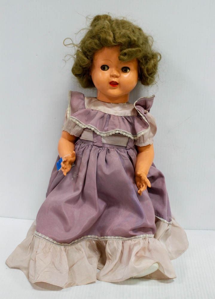 1955 PALITOY GIRL WALKER DOLL IN MAUVE DRESS