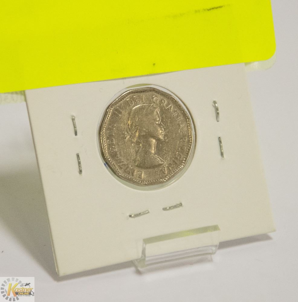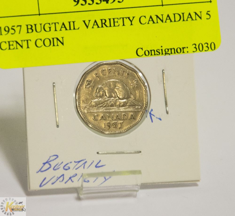1957 BUGTAIL VARIETY CANADIAN 5 CENT COIN