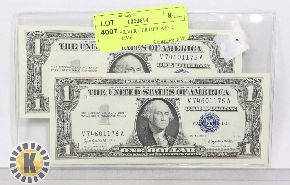 1957 USA SILVER CERTIFICATE 2 CONSECUTIVE