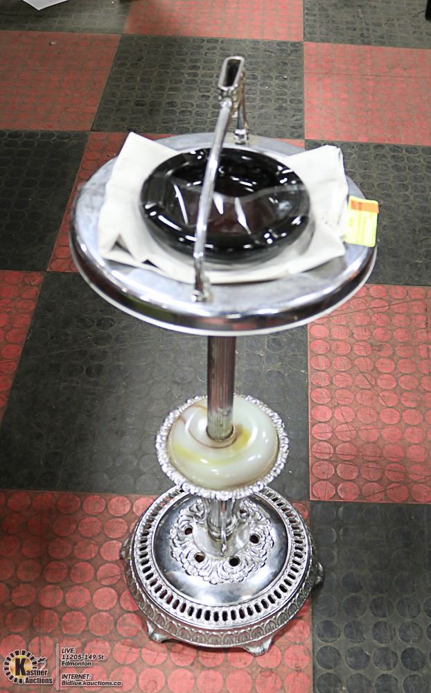 VINTAGE CHROME AND MARBLE ASHTRAY STAND. ORNATE CHROME WORK. 28 IINCHES IN HEIGHT. BEAUTIFUL CONDITION.-FURNITURE