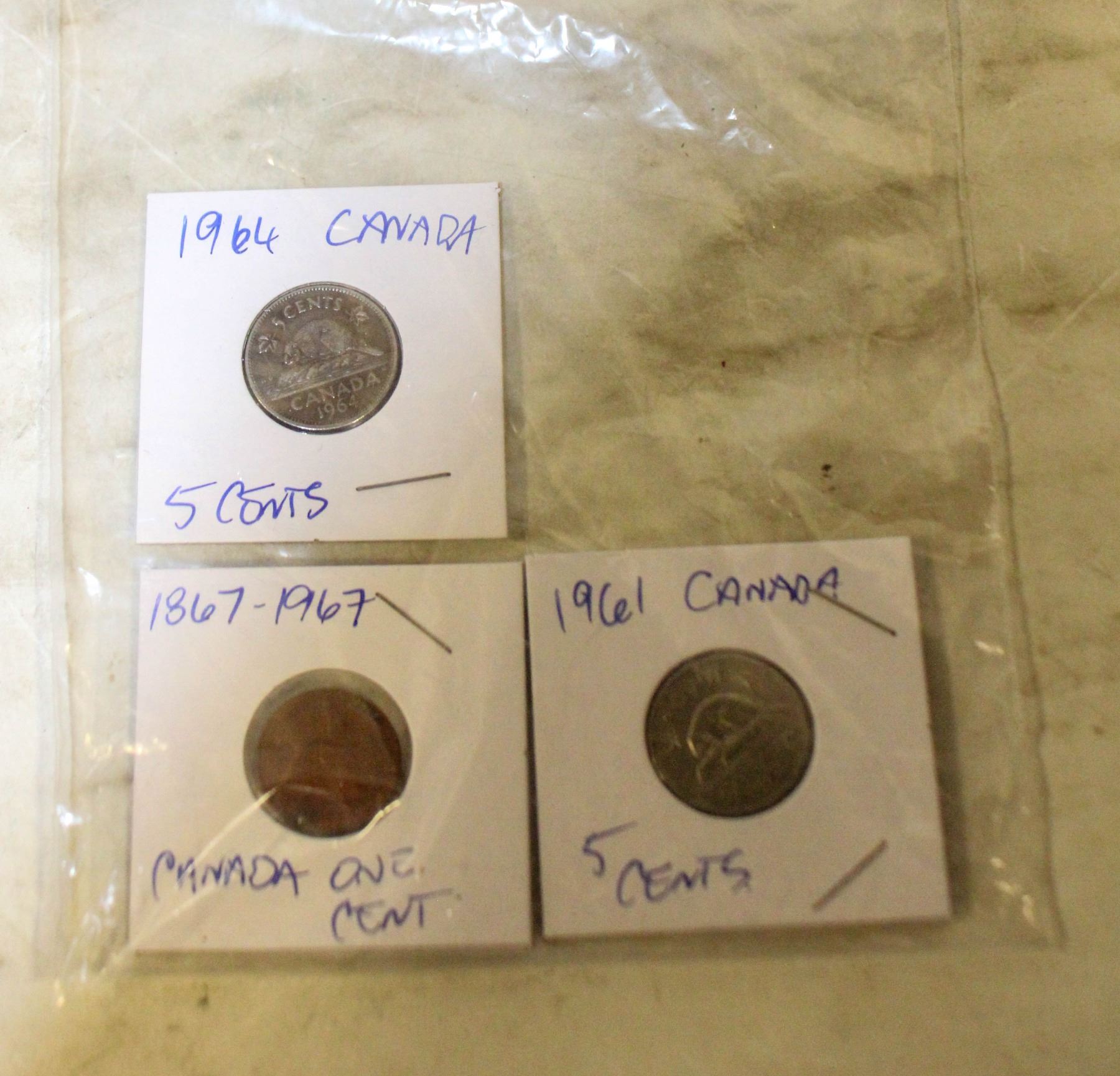 1961,1964 NICKEL 5 CENTS, 1967 PENNY ONE CENT COPP