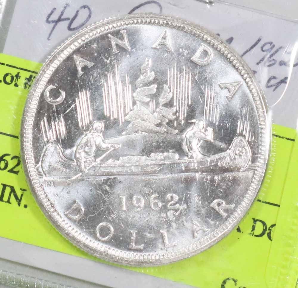 1962 CANADIAN SILVER DOLLAR COIN.