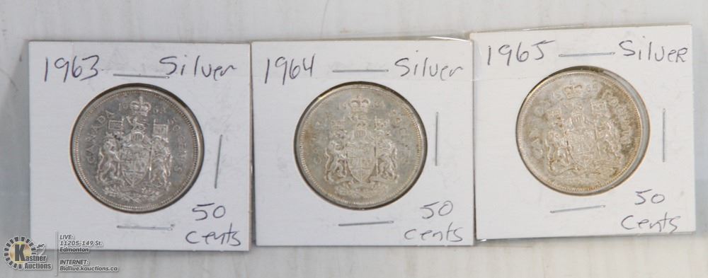1963, 1964 & 1965 CANADIAN SILVER 50 CENT PIECES