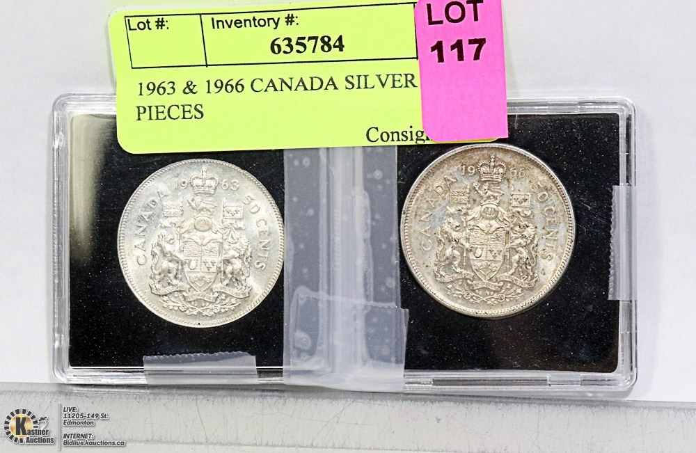 1963 & 1966 CANADA SILVER 50 CENT PIECES