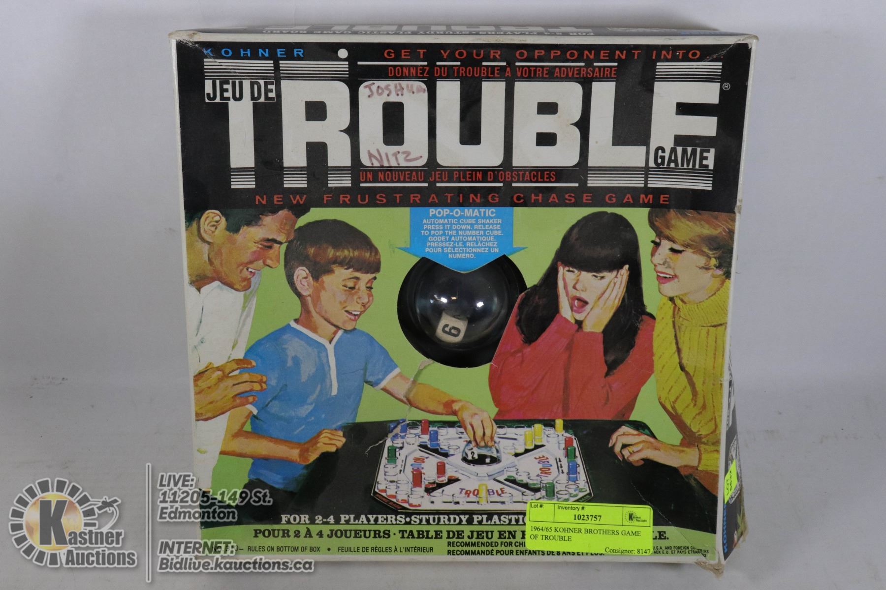 MADE BY IRWIN BROTHERS TOY LIMITED IN TORONTO ONTARIO. PRINTED IT IN 1964 AND 1965. BOARD IS IN NEW CONDITION. YELLOW AND RED PIECES COMPLETE. GREEN MISSING TWO PIECES AND BLUE MISSING ONE PIECE. DICE BUBBLE IS FUNCTIONING.