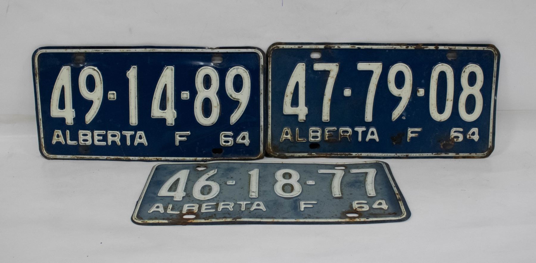 1964 ALBERTA FARM LICENSE PLATES SET OF 3