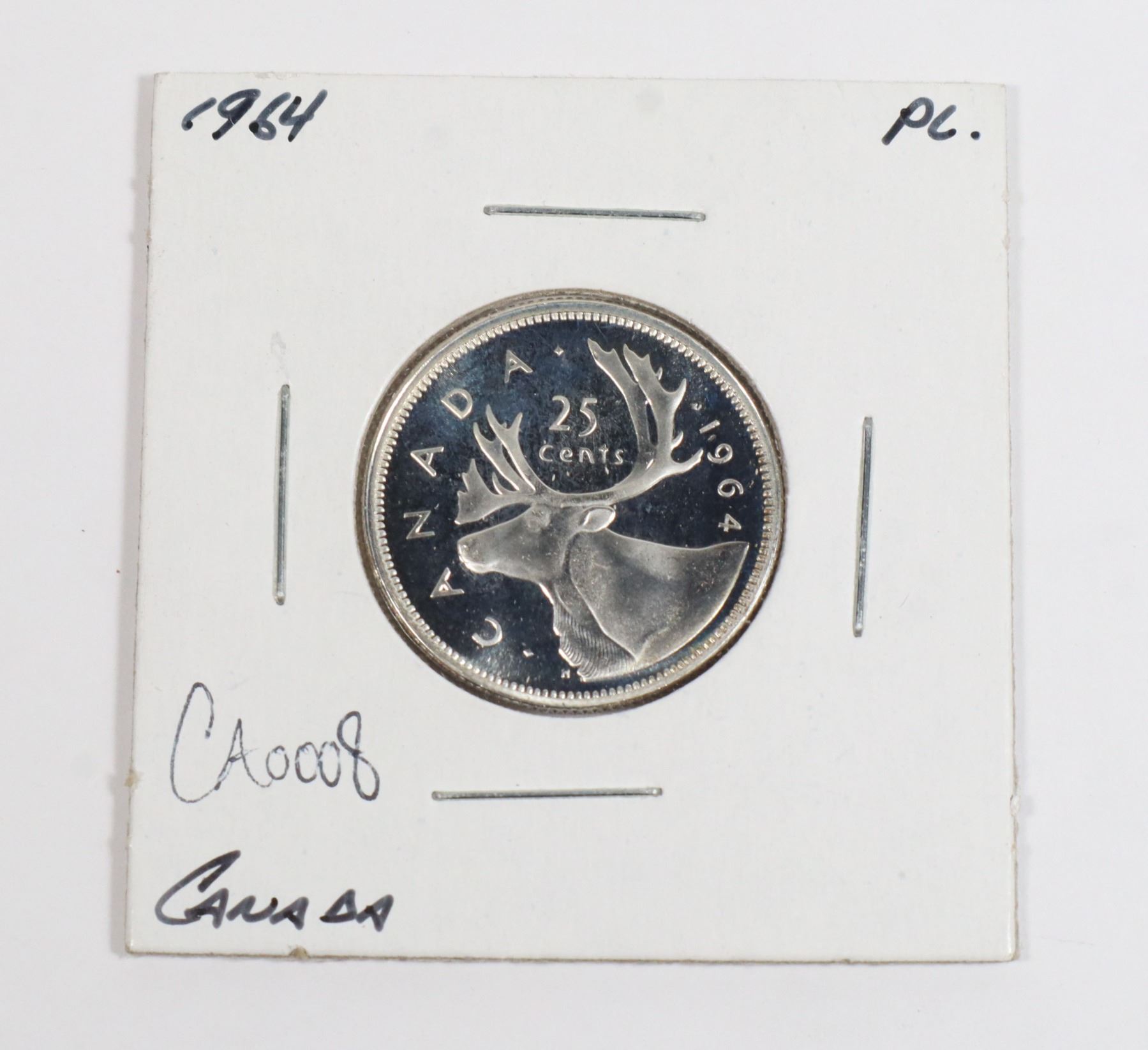 1964 CANADA 25 CENT PROOF LIKE SILVER COIN